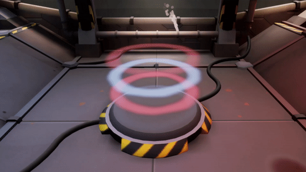 Hologram rings pulse above the button before the start of the game to indicate that players need to stand on it in order to start the game.
